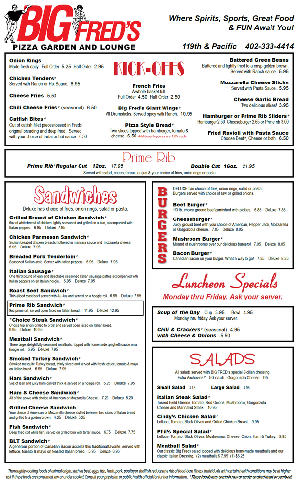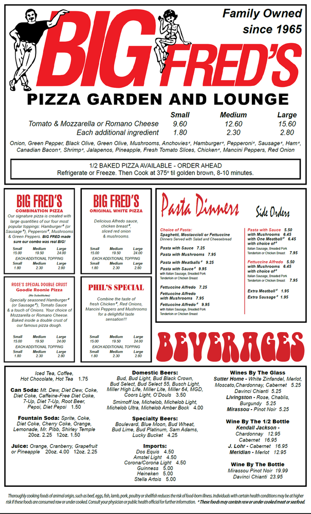 Big Fred’s Pizza Garden & Lounge Menu (2025 Update)